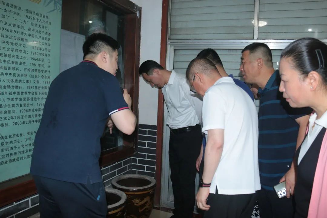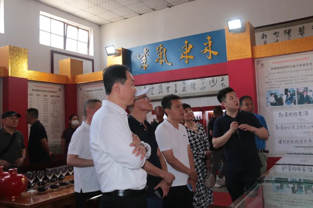 从制曲、糗糜、糖化、发酵等车间实地考察,郭锐同志感慨:参观了妙府酒厂,耳目一新,中国酿酒大师于秦峰一生奉献精神十分令人感动!酿最好的酒,为祖国争光,为人民造福!