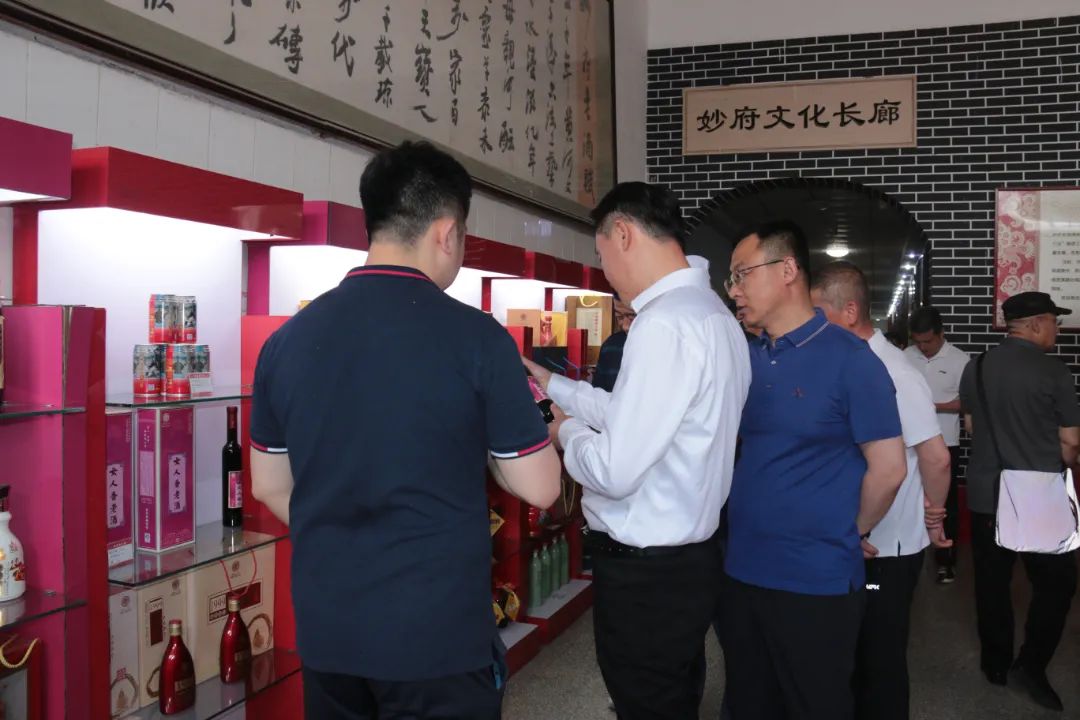 在妙府会客厅,妙府公司董事长、总经理于渊超向郭锐同志及全国劳模汇报了企业运行及产品创新情况,中国酿酒大师、青岛市即墨黄酒工程技术中心首席专家、即墨黄酒传统酿造工艺代表性承传人于秦峰就当前产业情况及即墨黄酒工艺作了详细汇报,郭锐同志及全国劳模对即墨妙府30多年来践行“工匠精神”,传承即墨黄酒非遗技艺给予赞许。