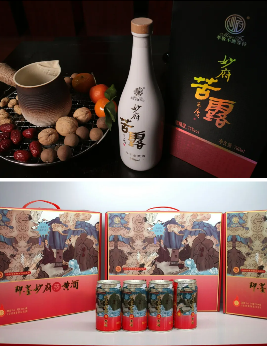 即墨妙府老酒,以北方特有的大黄米为原料,遵循“古遗六法”,结合现代技术,黄酒品质愈发优秀。其风味别致,营养丰富,酒色红褐,盈盅不溢, 晶莹纯正,醇厚爽口,有舒筋活血、补气养神之功效,深得古今名人赞许。妙府公司董事长、总经理于渊超根据市场需求,研发推出了妙府气泡黄酒、妙府苦露酒、妙府自加热黄酒等产品。