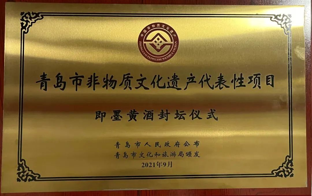 即墨黄酒封坛仪式被评为青岛市级非物质文化遗产。在中国北方几千年的老酒酿造过程中,封坛是老酒酿造工艺中必备的一道工序,有着四千年酿酒文化历史和三千年“古遗六法”酿造工艺的即墨妙府老酒,在传承和发扬传统老酒文化的同时,开启了中国黄酒封坛之先河。