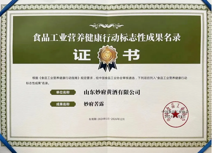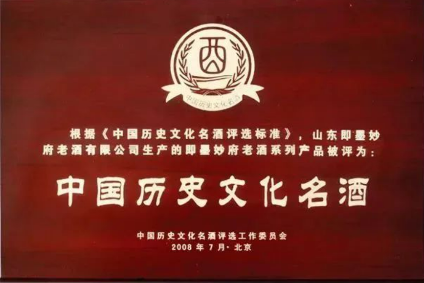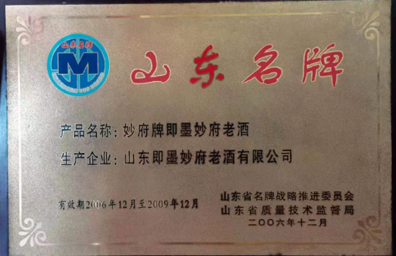山东妙府黄酒有限公司是中国北方传统黄酒生产骨干企业,“妙府”牌即墨妙府老酒被专家确立为“北方黄酒的典型优秀代表”,公司现占地57亩,拥有职工126人,技术人员20余名,年发酵能力5000吨,灌装能力5000吨,现有总资产3.7亿元,其设施、设备水平、生产规模和产品质量在我国北方处于领先地位。其品牌价值12.7亿元,为中国驰名商标、山东名牌、山东省省级非物质文化遗产、青岛名牌、上海合作组织青岛峰会指定产品。