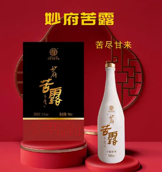 苦露酒是妙府公司的高端旗帜产品,极具东方韵味之风格,它是以三千多年工艺标准——“古遗六法”,通过研发让即墨传统老酒糖度降低为半干型、干型。