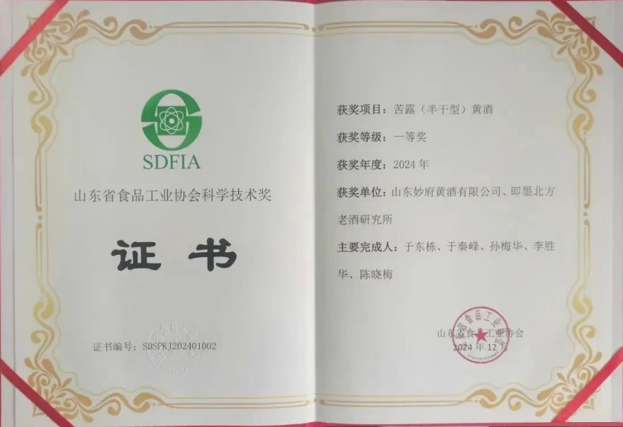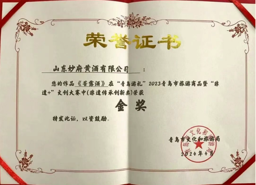 2025年4月8日,山东妙府黄酒有限公司董事长、总经理于渊超应邀出席“山东手造·青岛有礼”文创联盟启动仪式暨“QMG小岛文创”品牌发布会,同时山东妙府黄酒有限公司凭借其在文化创意领域的卓越表现和创新精神,成为首批“文创联盟合伙人”。这不仅是对妙府公司多年来在文化与产业融合方面努力的高度认可,也为传统黄酒文化的传承与发展注入了新的活力。 山东妙府黄酒有限公司是中国北方传统黄酒生产骨干企业,“妙府”牌即墨妙府老酒被专家确立为“北方黄酒的典型优秀代表”,公司现占地57亩,拥有职工126人,技术人员20余名,年发酵能力5000吨,灌装能力5000吨,现有总资产3.7亿元,其设施、设备水平、生产规模和产品质量在我国北方处于领先地位。其品牌价值12.7亿元,为中国驰名商标、山东名牌、山东手造、山东省省级非物质文化遗产。 即墨妙府老酒,以北方特有的大黄米为原料,遵循“古遗六法”,结合现代技术,黄酒品质愈发优秀。其风味别致,营养丰富,酒色红褐,盈盅不溢, 晶莹纯正,醇厚爽口。即墨妙府自加热黄酒用手指按压易拉罐底部,3分钟后罐内的即墨妙府老酒即可加热至55℃最佳饮用状态,适合了广大消费者的饮酒习惯,是时尚亲民,商机无限的首选产品。 苦露酒是妙府公司的高端旗帜产品,极具东方韵味之风格,它是以三千多年工艺标准——“古遗六法”,通过研发让即墨传统老酒糖度降低为半干型、干型。 妙府气泡黄酒在传统黄酒的基础上进行了大胆创新,将现代气泡元素与古老的黄酒酿造工艺完美融合。它不仅保留了黄酒的醇厚口感和丰富营养,还增添了气泡带来的清爽活力。 此次妙府公司成为首批“文创联盟合伙人”,标志着公司在文创领域的努力得到了行业的广泛认可。未来,妙府公司将借助这一平台,与联盟内的其他成员携手合作,共同推动文化创意产业的发展。通过资源共享、优势互补,进一步挖掘传统黄酒文化的潜力,开发更多具有创意和文化内涵的产品,为消费者带来全新的消费体验。同时,妙府公司也将继续秉承守正创新的理念,在传承传统黄酒酿造技艺的基础上,不断探索创新之路,让传统黄酒文化在新时代焕发出新的光彩。